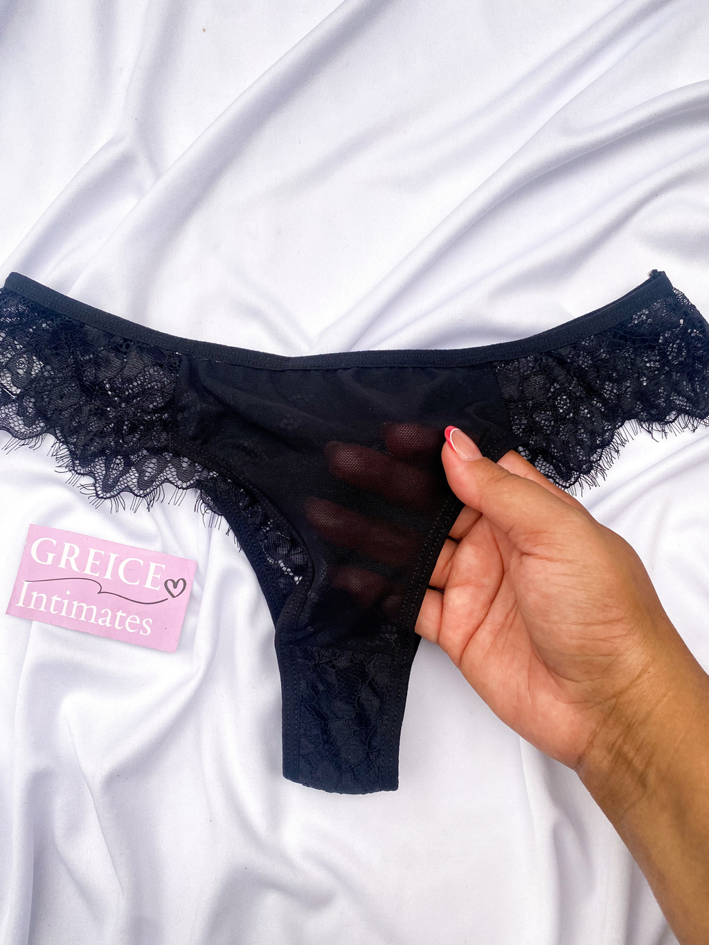 Calcinha: na frente de tule e renda francesa nas laterais atrás toda na renda modelo fio